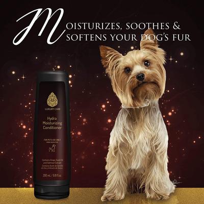 La Hydra El Acondicionador Hidratante contiene aceite de semilla de uva y extracto de avena para una hidratación intensa y suavidad del pelaje, potenciando el brillo y facilitando el cepillado.