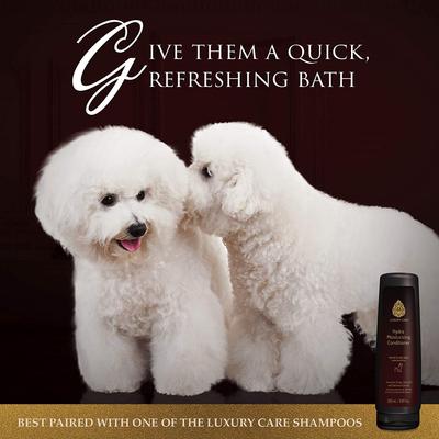 - Este acondicionador de larga duración para perros contiene una infusión de aceite de semilla de uva que promueve el crecimiento, el brillo y la suavidad del pelo entre los cepillados regulares.