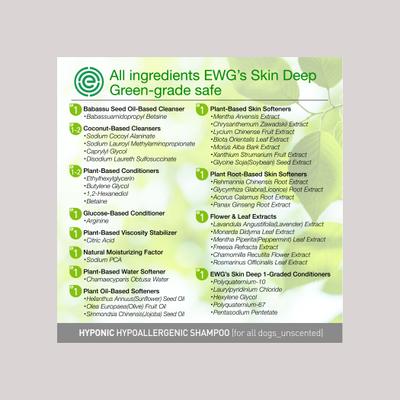 - Rinses clean and leaves coats bright and soft without conditioner!
