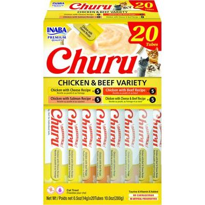 Churu - Puré cremoso de pollo y carne, variedad de premios para lamer para gatos, sin cereales, tubo de 0.5 oz, 20 unidades