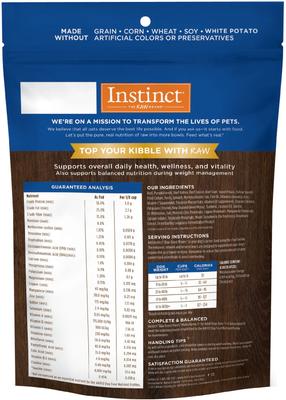 Give your barking bestie the nutrition she needs with Instinct Boost Mixers Multivitamin Grain-Free Freeze-Dried Raw Adult 7+ Dog Food Topper! This tasty topper is made with 100% real freeze-dried beef and functional ingredients like green-lipped mussel powder and turmeric for mobility support, coconut oil to support mental clarity, and probiotics to help maintain digestive health. It’s also free from grain, corn, wheat, soy, white potato, artificial flavors and preservatives. Even the pickiest pups will lap up the irresistible taste, and you can rest easy knowing you’re giving her a fur-esh, high-quality meal!