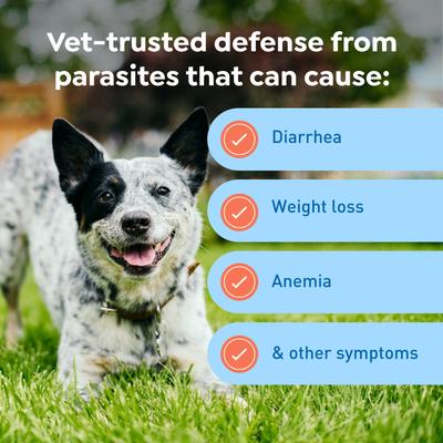 - Covers worms commonly found in dog parks trails, backyards or carried by mosquitoes