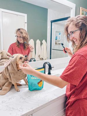 - Helps freshen your dog's breath as they chew.