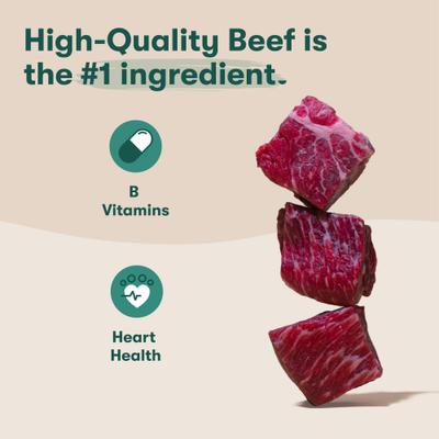 - Real beef, the first ingredient, provides plenty of protein to promote healthy joints and muscle growth.