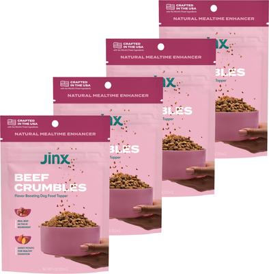Give your furry friend a tasty treat with Jinx Chicken Crumbles High-Protein Dry Dog Food Topper. Made with real, hearty beef and vitamin-rich sweet potato and pumpkin, this limited ingredient meal topper adds a delicious boost of slow-cooked flavor to your dog’s food. Even the pickiest pup will lick his bowl clean with just a sprinkle of the irresistible topper. This chicken recipe meal topper has no additives, fillers, artificial flavors, or colors and is suitable for dogs of all ages, breeds, and sizes.