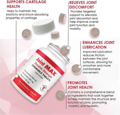 Las tabletas se pueden triturar y mezclar con el alimento de la mascota para facilitar su administración. Después de 6 semanas, se puede reducir la dosis si se observan resultados positivos. Dado que el organismo de cada mascota es diferente, los resultados pueden tardar más en aparecer en algunas. Las tabletas masticables Joint MAX® Triple Strength también se pueden usar a largo plazo en perros normales para ayudar a mantener sus articulaciones sanas.