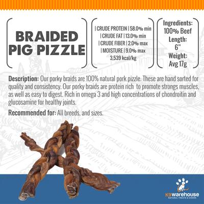 Pig Pizzle Pork Flavored Dog Chews, 6 count