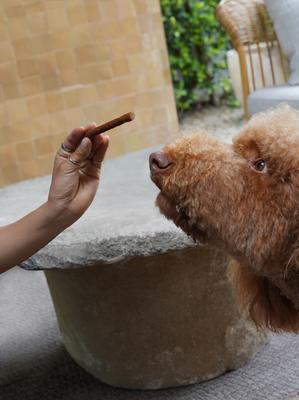 The Kismet Slow Cooked Beef Sticks Jerky Dog Treats are a tasty way to reward your furbaby. These premium, natural, slow-cooked beef sticks are delicious and feature real beef as the first ingredient. They also contain antioxidant-rich superfoods to promote your pup’s overall health.