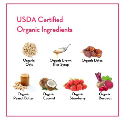 Organic Brown Rice Syrup, Organic Date, Organic Peanut Butter, Organic Coconut, Organic Strawberry, Organic Beet