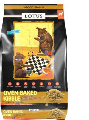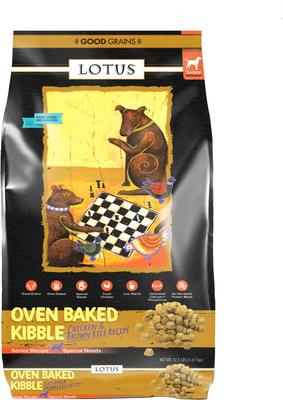 Feed your senior sidekick the nutrition she needs with the scrumptious flavor she loves! Lotus Wholesome Good Grains Senior Special Needs Recipe Dry Dog Food is an oven-baked kibble that combines real chicken, chicken liver, sardines, brown rice and recognizable fruits and vegetables for a balanced meal. The beneficial blend of olive and salmon oils provides your dog with healthy omega fatty acids, while vitamins, antioxidants and nutrients help support her overall health. Plus, this kibble tastes just like an oven-baked chicken cookie that your canine companion won’t be able to resist!