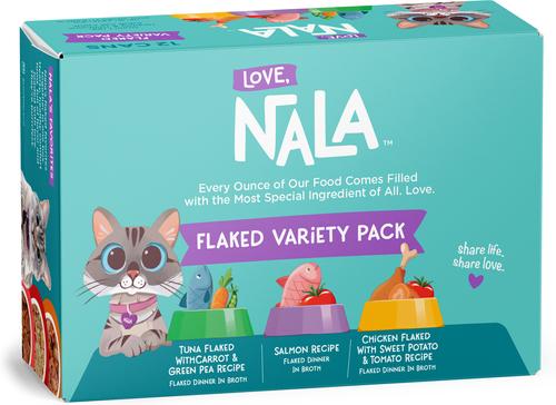 Meat is the first ingredient in the Love, Nala Flaked Salmon Recipe in Broth Adult Grain-Free Wet Cat Food for paw-some taste and protein. Essential nutrients support your furbaby’s health and wellbeing, and taurine promotes a healthy heart and eyes. Balanced levels of omega-3 and omega-6 fatty acids support a shiny coat and healthy skin, so your best friend looks as paw-some as she feels. This recipe is free of by-product meals, fillers, and artificial preservatives, colors, or flavors, so it’s a purr-fect choice for your kitty.