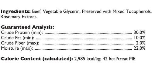 Beef, Vegetable Glycerin, Collagen Casing, Natural Flavors, Mixed Tocopherols (Preservative), Rosemary Extract.