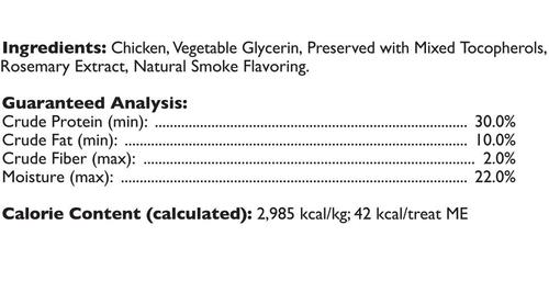 Chicken, Vegetable Glycerin, Natural Flavors, Mixed Tocopherols (Preservative), Rosemary Extract.