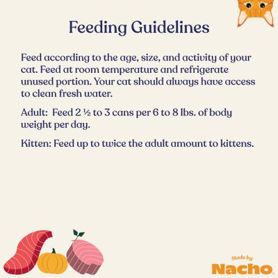 Adult Cats: Feed 2 ½ to 3 cans per 6-8 lbs of body weight per day.