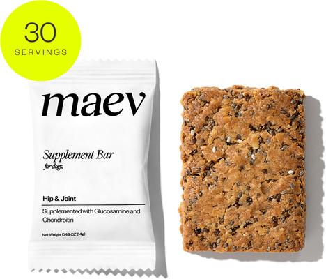 Give your furry friend the support they need with MAEV Hip & Joint Supplement Bars for Dogs. These bars, formulated by a PhD veterinarian, contain Glucosamine and Chondroitin to help rebuild cartilage and improve mobility in your pet’s joints and bones. Made with 100% human-grade ingredients, these bars are designed to support your dog’s overall health and longevity. Plus, they’re made with only eight simple ingredients, including peanut butter, coconut, and chia seeds. Each bar contains a day’s worth of balanced nutrition and can be served as a topper, treat, or on-the-go snack. Give your pet the gift of healthy joints and bones with these supplement bars!