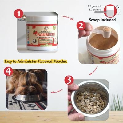 Makondo Pets Cranberry Urinary Tract Support Dog Supplement is the paw-fect over the counter solution to support your pooch’s bladder heath. This cranberry supplement is powdered, so you can give it to your pup without fuss. Just add it to her diet each day to help ease bladder issues such as urinary tract infections, incontinence, and bladder leakage. With its scrumptious bacon flavor, your dog will gobble it right up! This supplement also supports your canine companion’s immune system.
