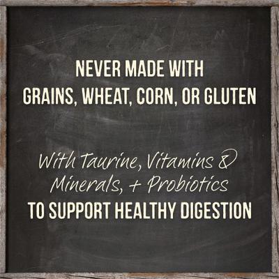 - Free of grain, wheat, corn and gluten.