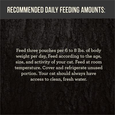 Feed three pouches per 6 to 8 lbs. of body weight per day. Feed according to the age, size, and activity of your cat. Feed at room temperature. Cover and refrigerate unused portion. Your cat should always have access to clean, fresh water.