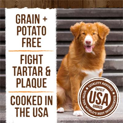 The Merrick Fresh Kisses Natural Dental Chews, Treats Infused with Pumpkin and Cinnamon For Medium Dogs 25-50 Lbs are a paw-some way to support your furbaby’s dental health and fur-eshen his breath, too! Sized for dogs weighing 25 to 50 pounds, these treats offer two big benefits. Their double-brush design helps to clean your dog’s teeth as he chews to fight plaque and tartar buildup. These treats also help to freshen your pup’s breath for sweeter doggy kisses. Crafted with just 13 ingredients, these chews are free of potato, gluten, and grain, so they’re paw-some for pups with food sensitivities. Real pumpkin supports healthy digestion, too! These treats are a tasty way to reward your best friend, and they’re tough enough to treat your dog to a satisfying chewing session.