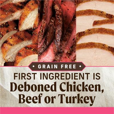 - Real deboned beef, chicken or turkey is the first ingredient in these recipes, comprised of real meat and high protein to help small breed dogs maintain lean muscle mass and energy levels.