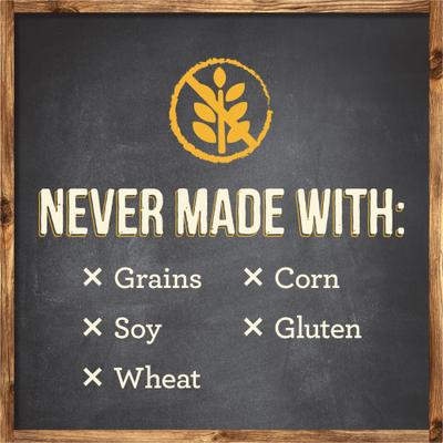 - Contains no grains, potatoes, or artificial colors, flavors, or preservatives.