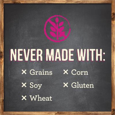 - Contains no grains, potatoes, or artificial colors, flavors, or preservatives.