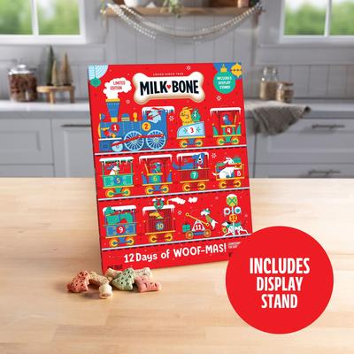 - Get your pup in the howl-iday spirit with the Milk-Bone countdown calendar with treats for dogs.