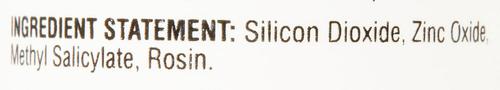 Zinc Oxide, Sliicon Dioxide, Methyl Salicylate, Rosin and Bentonite.
