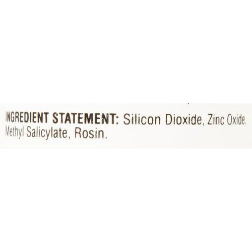Óxido de zinc, Dióxido de silicio, salicilato de metilo, colofonia y bentonita.