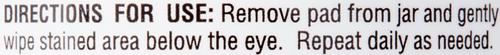 Remove pad from jar and gently wipe stained area below the eye. Repeat daily as needed.