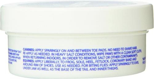 Apply sparingly on and between toe pads. No need to shave hair. Re-apply as needed. In heavy salt conditions, wipe paws with a clean soft cloth, when returning indoors, in order to remove salt or other contaminates.