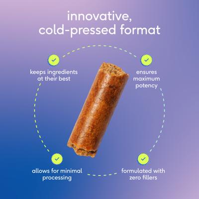 Chill vibes only. Native Pet GutWell Stress Support, Anxiety & Calming Supplement for Dogs promotes your pup’s emotional balance by supporting a healthy gut-brain axis with a targeted triple-biotic blend. Clinically studied probiotic strains help regulate happy signals to the brain, while postbiotics, magnesium, and passionflower help your pup stay relaxed in high-stress situations like separation anxiety, fireworks, and car rides. It’s cold-pressed, vet-developed, and backed by science to help your dog stay calm, cool, and collected.