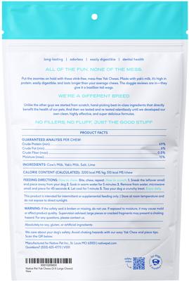 Put the barks, whines, and zoomies on pause with Native Pet X-Large Natural Gluten-Free & Lactose-Free Yak Cheese Flavored Dental Dog Chew Treats. No smell, no mess, just tons of fun for your furry friend as he chomps away on these long-lasting chews. Made with yak and cow’s milk, these treats are drool-worthy and high in protein. Plus, chewing on these treats helps to reduce tartar from your furbaby’s teeth. With their sturdy texture and generous size, these long-lasting dog treats are designed for lots of fun and flavor.