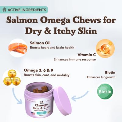 - They aid in soothing itchy skin, reducing dryness, and restoring shine from the inside out, making them ideal for dogs with seasonal allergies.