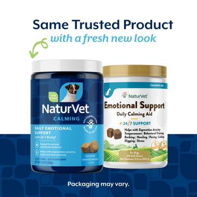 Help reduce your furbaby’s stress and tension with NaturVet Daily Emotional Support Calming Supplements for Dogs. The chews provide gentle emotional balance support with botanicals and calming ingredients to help relieve separation anxiety, stress, and nervousness. Each tasty chew blends melatonin, magnesium aspartate, and passion flower to promote rest and relaxation. Chamomile helps soothe sensitive stomachs, and B-vitamins support a steady mood to help ease barking, pacing, licking, or digging. Perfect for storms, travel, vet visits, or daily stress, these chews feature a delicious hickory smoked bacon flavor, so they’re easy to feed to your best friend.