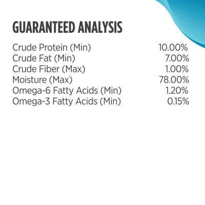 Turkey, Salmon Broth, Turkey Liver, Carrots, Salmon, Chickpeas, Natural Flavor, Ground Flaxseed, Guar Gum, Agar-Agar, Potassium Chloride, Salt, Choline Chloride, Zinc Proteinate, Iron Proteinate, Sodium Carbonate, Thiamine Mononitrate, Vitamin E Supplement, Copper Proteinate, Manganese Proteinate, Sodium Selenite, Cobalt Proteinate, Niacin Supplement, D-Calcium Pantothenate, Vitamin A Supplement, Riboflavin Supplement, Biotin, Vitamin B12 Supplement, Potassium Iodide, Pyridoxine Hydrochloride, Vitamin D3 Supplement, Folic Acid.