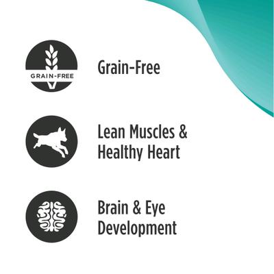 - Low-glycemic and specially made free of grains, corn, wheat or soy for pups with food sensitivities.