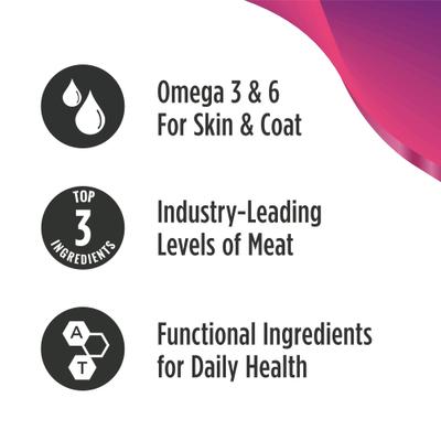 - Complementary protein duo features beef and rainbow trout as top ingredients for the animal protein and flavor your little carnivore craves.