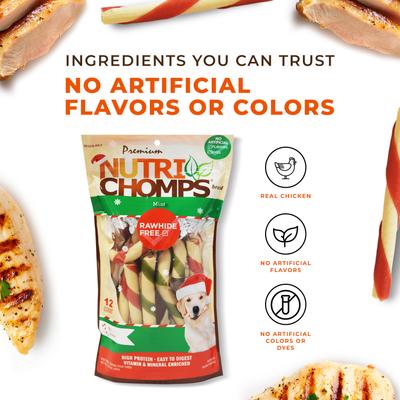- These festive treats are 100% rawhide-free, making them easier to gnaw and digest.