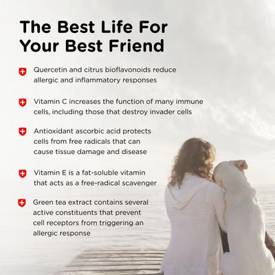 - Features quercetin and citrus bioflavonoids to reduce allergic reactions.