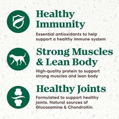 - Each serving is made with real chicken as the first ingredient to support your pup's strong muscles and lean body.
