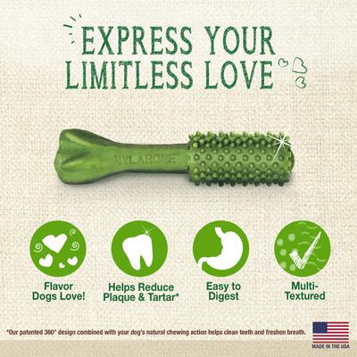 - The 360-degree scrubbing nubs help clean teeth and freshen breath as your dog chews.