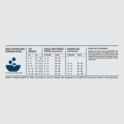 Guard your older kitty’s health like the treasure it is with ORIJEN GUARDIAN SENIOR Dry Cat Food, Grain-Free Cat Food for Senior Cats. ORIJEN makes this senior cat food diet specifically for older cats like yours, and it’s packed with amino and fatty acids and nutrients to support your cat’s nutritional needs as she ages. As an ancestral carnivore, your kitty needs a diet packed with protein, which is why this food starts with five fresh or raw fish or poultry ingredients—salmon, duck, chicken, turkey and flounder. The biologically appropriate, grain-free formula is made with up to 90% premium animal ingredients to create a deliciously nourishing food for your furry friend. The special recipe is designed to support eight key health benefits—healthy immune function, digestive health, skin and coat health, muscle and weight maintenance, healthy joints and bones, cognitive function and brain health, heart health, and eye health. Make your kitty’s golden years deliciously fulfilling and nutritious with this senior formula packed with everything she needs to thrive!