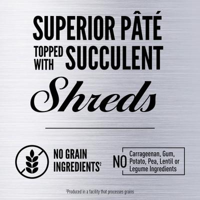 - This high-protein cat food pate is topped with succulent shreds of chicken in a delicious chicken and fish bone broth.