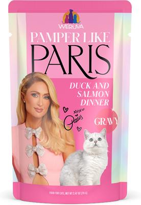 Pamper your furbaby like Paris Hilton pampers her cats with Weruva Paris Hilton Pamper Like Paris Duck & Salmon Dinner in Gravy Grain-Free Shredded Wet Cat Food. This su-purr tasty recipe features white meat chicken breast, wild caught tuna, salmon, and grass-fed beef for a truly indulgent meal. Free of grains, gluten, carrageenan, wheat, corn, and soy, this premium food is crafted with high-quality ingredients and no artificial colors, flavors, preservatives, or animal byproducts. Plus, it’s a complete and balanced diet for adult cats with added vitamins, minerals, and antioxidants. Give your kitty a taste of the good life with this delicious recipe.