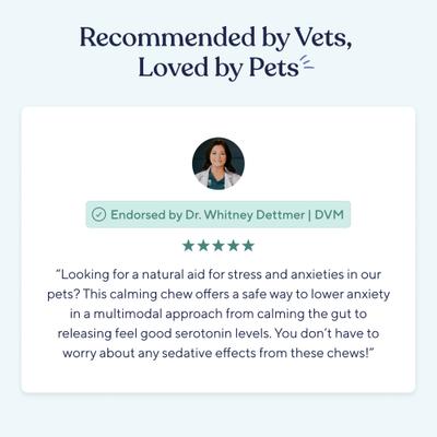 Soothe your best friend’s mood swings with the calming ingredients in Pawfy Calming Turkey Flavor Chews Dog Supplement! Made in the United States, these chewy, turkey flavored treats help manage stress, anxiety, and anger in pups with a combination of chamomile, passionflower, and L-tryptophan, a soothing amino acid. These organic ingredients help soothe your fur baby’s tense muscles, ease upset stomachs, and calm bowel issues, all while balancing his overall mood. They are paw-fect for dogs who struggle with separation anxiety or mood disturbances – simply serve as directed to let your best friend relax.
