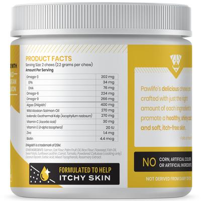 Say goodbye to uncomfortable itchy skin and hello to a shiny coat for your best fur-iend with Pawlife Omega Pup Advanced Skin & Coat Support Salmon Flavor Soft Chews Dog Supplement. This effective, natural formula of ingredients— like Omega fatty acids, wild Alaskan salmon oil, and vitamins C and E—eases the discomfort associated with dry skin and itchiness, while supporting hip and joint mobility, immune health, and digestive health. It’s even tasty—these salmon-flavored chews don’t contain any unnecessary fillers and improve your pup’s health in as little as four to six weeks!