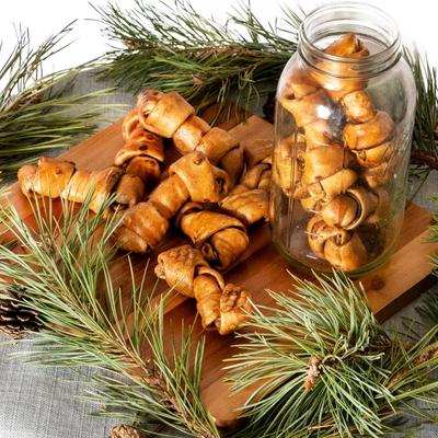 Huesos de perro de piel de res de 4 pulgadas con sabor a mantequilla de maní, 24 unidades