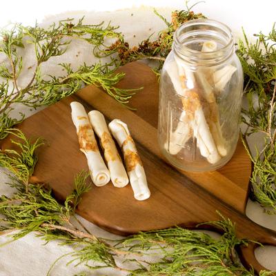 Pet Factory Twistedz 5-inch Beefhide Chip Rolls Beef Flavored Wrap Dog Hard Chews are a real “chip” off the tasty block! These two-in-one treats combine real meat and American beefhide to create a flavorful, natural chew that dogs find hard to resist! Twistedz Beefhide Chip Rolls are the paw-fect choice for avid chewers. Each beefy bite is 99% digestible and contains no harmful additives or preservatives. With paw-rental supervision, these chews offer a tasty, fun and satisfying workout for your dog’s wild instincts!