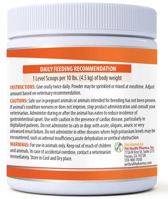 Help boost your pets’ potassium with the RenaCare K Powder Kidney Cat & Dog Supplement from Pet Health Pharma! Made in the USA for the quality you can trust, this highly palatable supplement helps support normal renal health in dogs and cats. It helps promote the absorption of potassium into the bloodstream, allowing you to provide additional kidney support to pets that have low potassium levels. It even boasts a chicken liver flavor that makes it easy to administer to your pet and can be used alongside high-potassium diets.